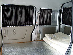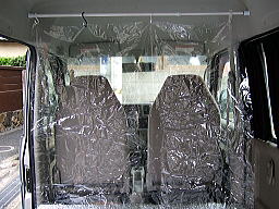 ワゴンタイプの車は荷室が広い為、クーラーの効きが悪いので、ビニールで仕切りをしています。