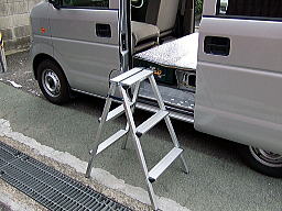 ジェットバックには、この脚立で上がり、荷物を降ろします。