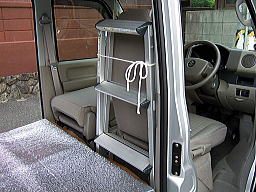 普段は、運転席の後ろにくくり付けてます。