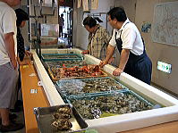 ここは、写真のような水槽に、牡蠣(カキ)がいてるので、その中から自分の食べたい牡蠣(カキ)を選んで、自分で炭火焼きにして食べるという本格的なところでした。