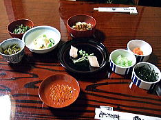 「わんこそば」は、写真の薬味を乗せていただきます。
