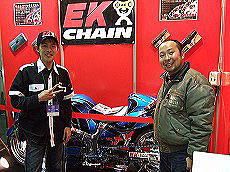 EKチェーンのブースに、知っている人が、バイクを展示していると聞いていたので、立ち寄りました。