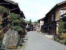 馬籠宿と同じくこちらも、昔ながらの町並みが残った風情ある宿場町です。 もちろん、道の両脇には土産物屋が建ち並び、けっこう楽しめます。 ただ、やはりアスファルトなので、先ほどの石畳と比べると風情は劣ります。
