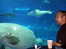 この水族館の良いところは、水槽の「真横に」カフェがある事。